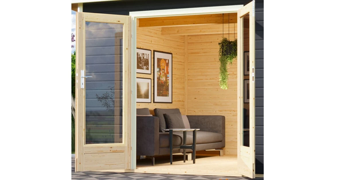 Unser Gartenhaus Radeburg 2 wird mit unserer Premium-Ganzglastür geliefert. Sie besteht aus Echtglas und ist extra hoch. Die Höhe beträgt 188 cm, sodass auch die großen Gartenhausbesitzer den Kopf nicht zu sehr einziehen müssen. Gesichert wird das Gartenhaus durch das im Lieferumfang enthaltende Zylinderschloss inklusive 3 Schlüsseln. Ein weiterer Vorteil des Gartenhauses sind die im Lieferumfang enthaltenden Dreh-Kipp-Fenster aus Echtglas mit einem Maß von 60 x 170 cm.