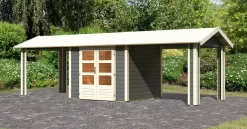 Karibu Gartenhaus 28mm Wandstärke Theres 3 terragrau mit 2 Dachausbauelementen
