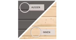 Hinweis: Die Wandinnenseiten, das Dach, der Boden und die Schnittkanten sind aus produktionstechnischen GrĂĽnden nicht endbehandelt und stellen somit einen Unterschied zur AuĂźenseite dar. (Diese mĂĽssen nachbehandelt werden)