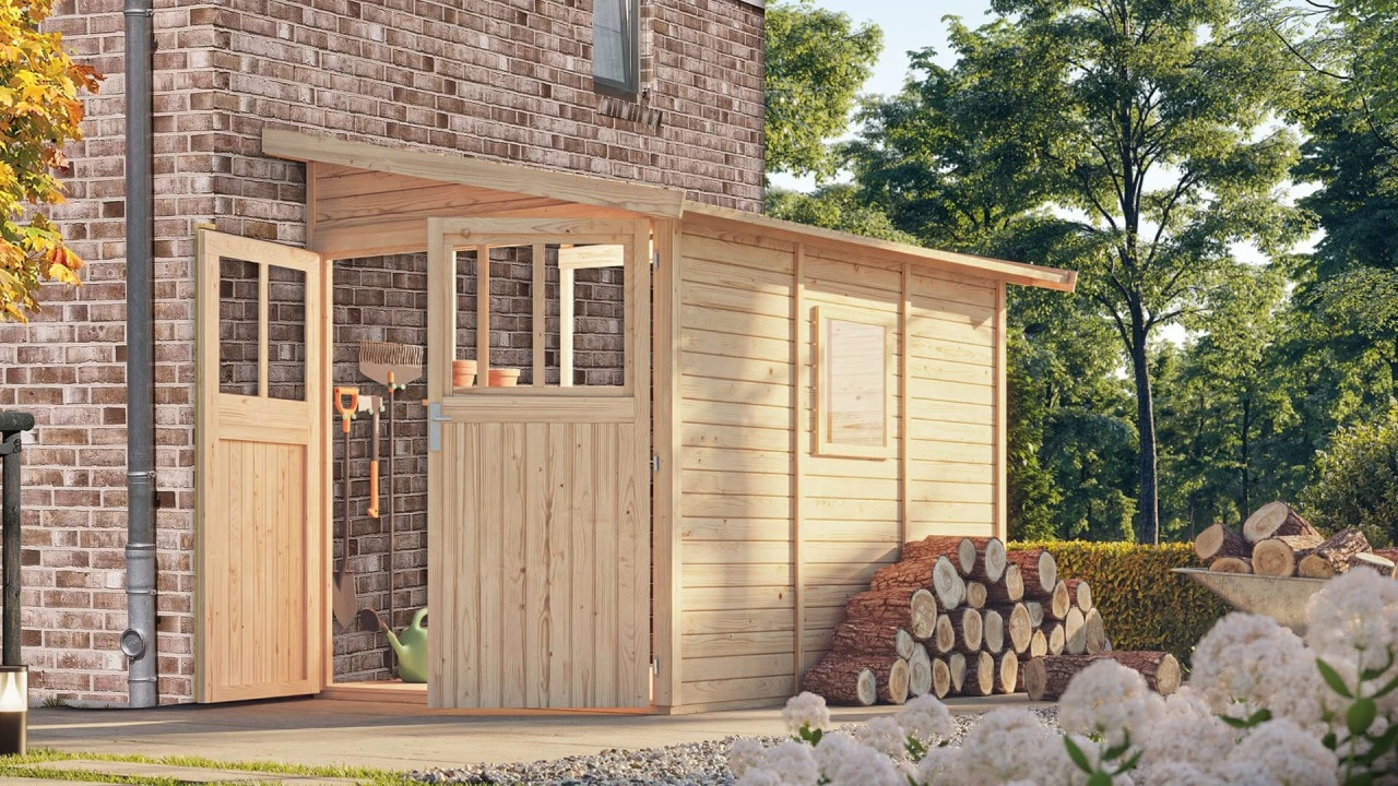 Karibu 19mm Gartenhaus Wandlitz 3 (Anlehnhaus) naturbelassen