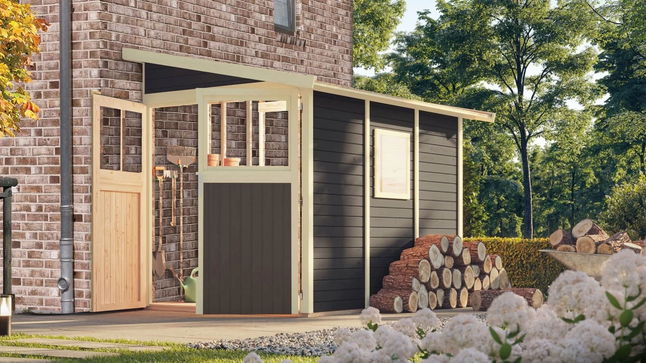 Karibu 19mm Gartenhaus Wandlitz 3 (Anlehnhaus) terragrau