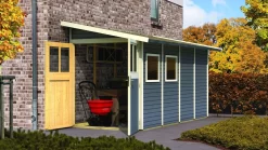 Das Gartenhaus Wandlitz 4 bietet für kleine Gärten die optimale Lösung. Da das 19 mm Gartenhaus an die Hauswand gestellt wird, verschenkt es keine Nutzfläche im Garten. Diese kann so zum Toben der kleinen oder für eine gemütliche Hollywoodschaukel verwendet werden. Verstauen Sie Ihre Gartengeräte wie den Rasenmäher, die Schubkarre oder die Gießkanne im Gartenhaus Wandlitz und schützen Sie diese vor der Witterung. Auch das Lagern der Gartenmöbel im Winter ist möglich. So bleibt Ihr Garten ordentlich und Sie können das Ambiente noch mehr genießen.