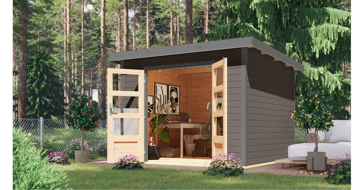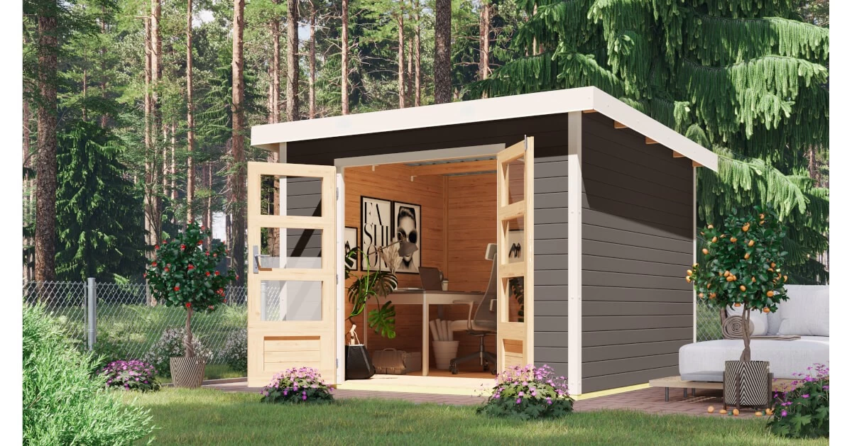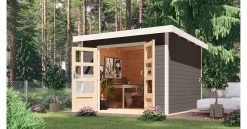 Erleben Sie die perfekte Vereinigung von Holz und Metall mit dem Hybrid-Gartenhaus von Karibu. Genießen Sie hochwertige Materialien, geringe Wartung, Witterungsbeständigkeit, Individualisierbarkeit, einfache Montage, Langlebigkeit und ein modernes Design.