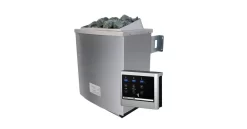 2 stabile Liegen aus Massivholz, 9kW Saunaofen mit externer Steuerung Easy, Ofenschutzgitter, Montageanleitung