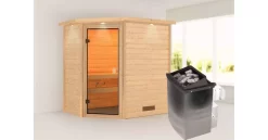 Karibu 38mm Massivholzsauna Jella mit 9kW Saunaofen