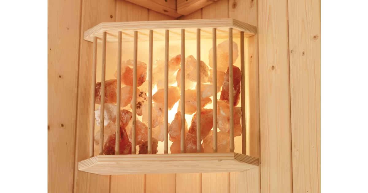 Holen Sie sich die salzige Seeluft in Ihre Sauna und schaffen Sie sich ein schönes Ambiente mit der Salzkristall-Leuchte. Die Leuchte besteht aus einem Holzgestell mit Holzstäbchen, einer 4mm starken, sandgestrahlten Klarglasschreibe und einer Feuchtraumlampe. Für die perfekte Luft in der Sauna werden die Salzkristalle zwischen die Klarglasscheibe und die Holzstäbchen gelegt. Durch den aufsteigenden Wasserdampf in der Sauna werden die wertvollen Mineralien aus dem Kristall gespült und bereichern die Luft. Vor allem Allergiker und Asthmatiker können von der positiven Wirkung profitieren. Die Salzkristall-Leuchte hat eine Größe von (LxBxH) 25x25x28cm und ist für die Eckmontage geeignet. Lehnen Sie sich in Ihrer Sauna zurück, schließen Sie die Augen und Atmen Sie die gesunde, salzhaltige Luft ein. Träumen Sie sich ans Meer in Ihrer Sauna mit der Salzkristall-Leuchte für das perfekte Ambiente.