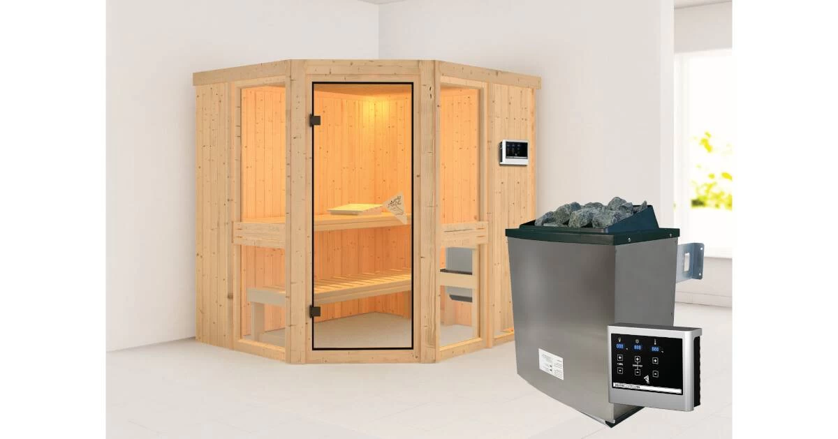 Karibu 68mm Systemsauna Amelia 1 + 9kW Saunaofen mit externer Steuerung