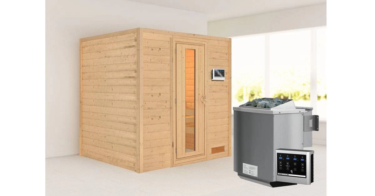 Karibu 38mm Massivholzsauna Anja mit 4,5kW BIO-Kombiofen mit ext. Steuerung Easy