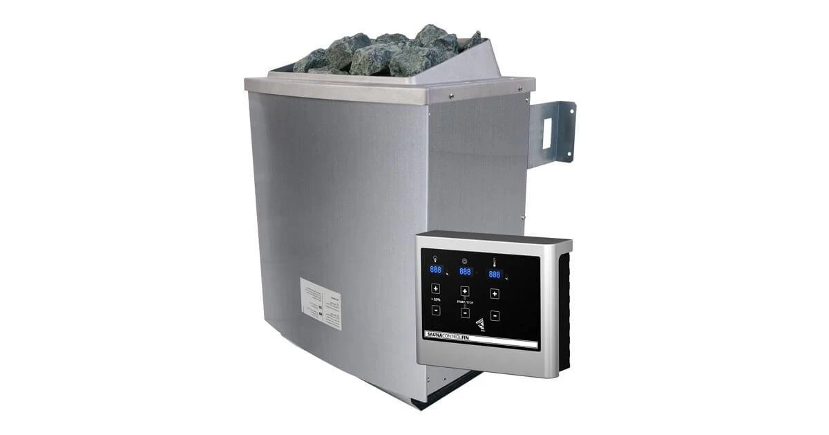 2 stabile Liegen aus Massivholz, 9kW Saunaofen mit externer Steuerung, Ofenschutzgitter, Montageanleitung