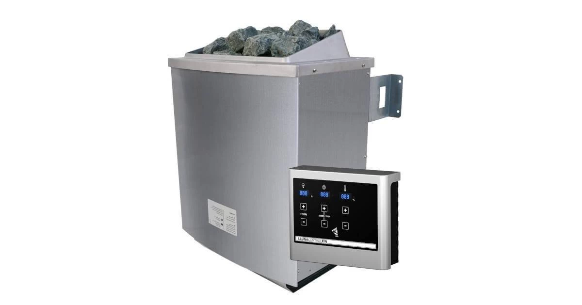 3 stabile Liegen aus Massivholz, 9kW Saunaofen mit externer Steuerung Easy, Ofenschutzgitter, Montageanleitung