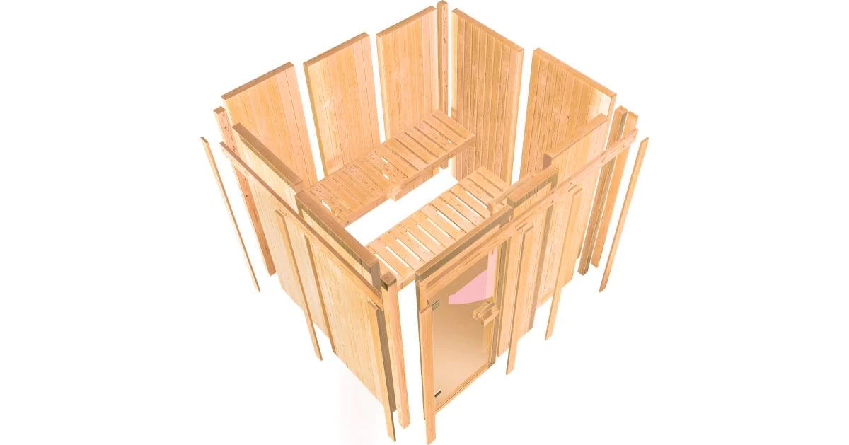Karibu 68mm Systemsauna Benin mit 3,6kW Saunaofen mit ext. Steuerung Easy