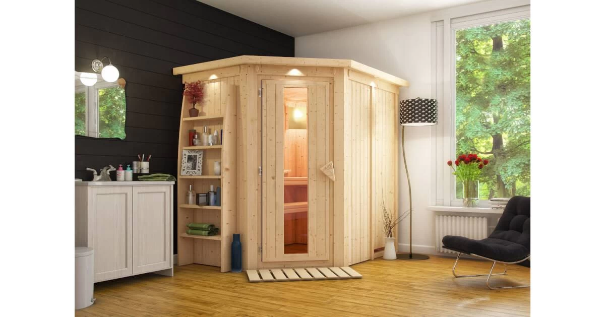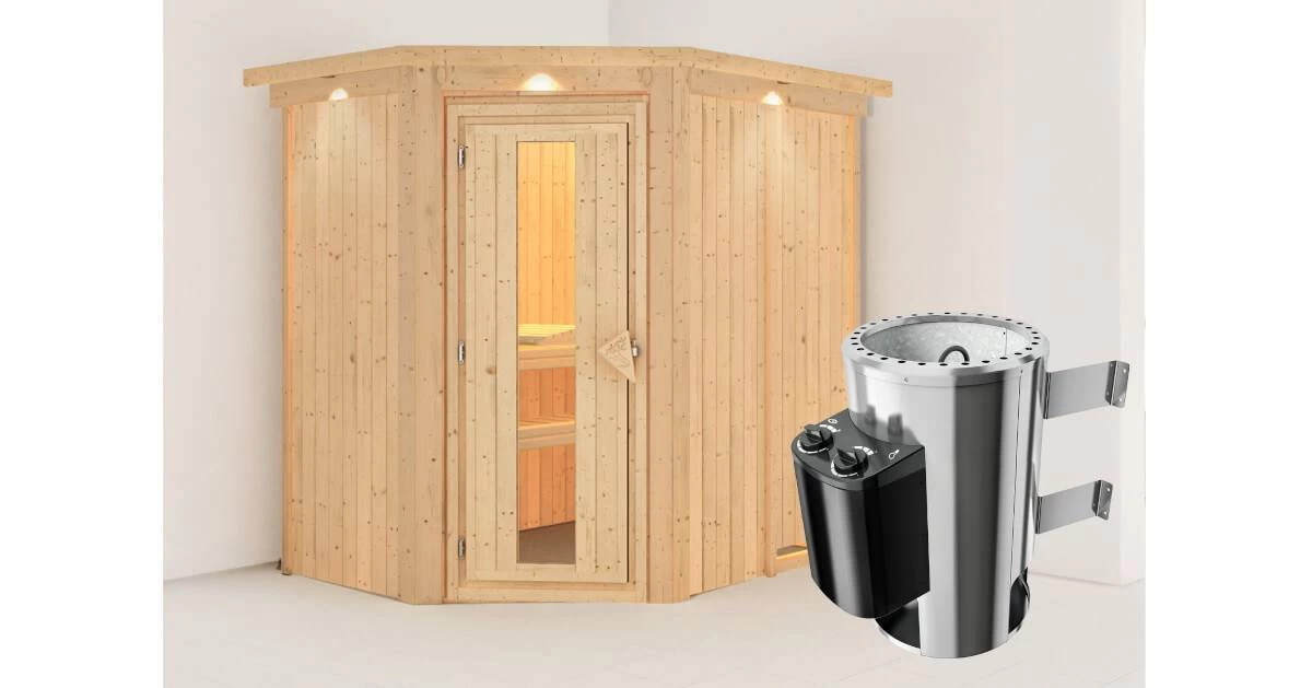 Karibu 68mm Systemsauna Caspin mit 3,6kW Saunaofen mit integrierter Steuerung
