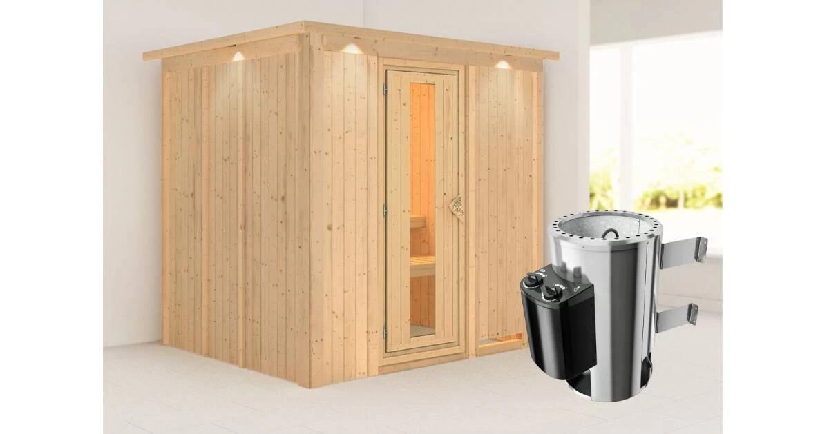 Karibu 68mm Systemsauna Daria mit 3,6kW Saunaofen mit integrierter Steuerung
