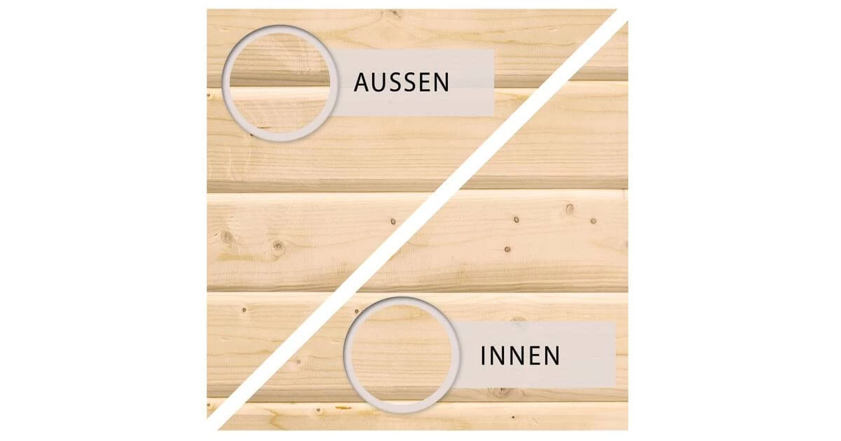 Das Fasshaus aus 38 mm starker, nordischer Fichte wird im Steck-/Schraubsystem montiert. Mit einem Gesamtmaß von 205 cm x 273 cm bietet es genügend Platz zum Entspannen. Innen bieten 2 Saunabänke aus Fichte Platz zum Liegen. Das formschöne und praktische Tonnendach sorgt für den Witterungsschutz von oben. Betreten werden kann das Saunahaus durch eine bronzierte Ganzglastür mit Magnetverschluss. Ein Ofenschutzgitter und alle notwendigen Schrauben und Beschläge sowie eine aussagekräftige Montageanleitung sind selbstverständlich ebenfalls dabei.