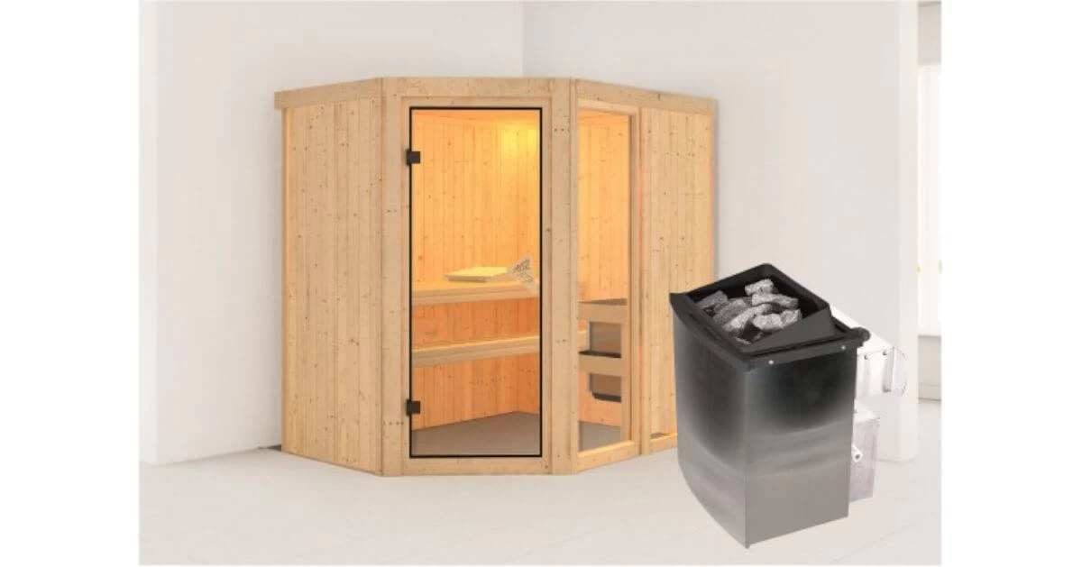 Karibu 68mm Systemsauna Fiona 1 + 9kW Saunaofen mit externer Steuerung