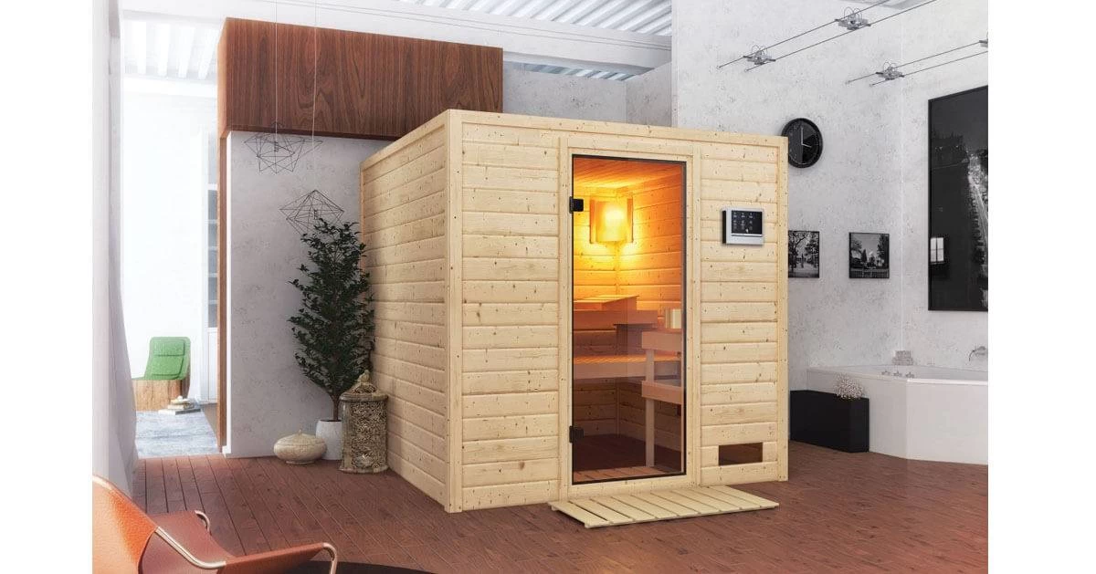 Karibu 38mm Massivholzsauna Jara mit 9kW Saunaofen mit ext. Steuerung Easy