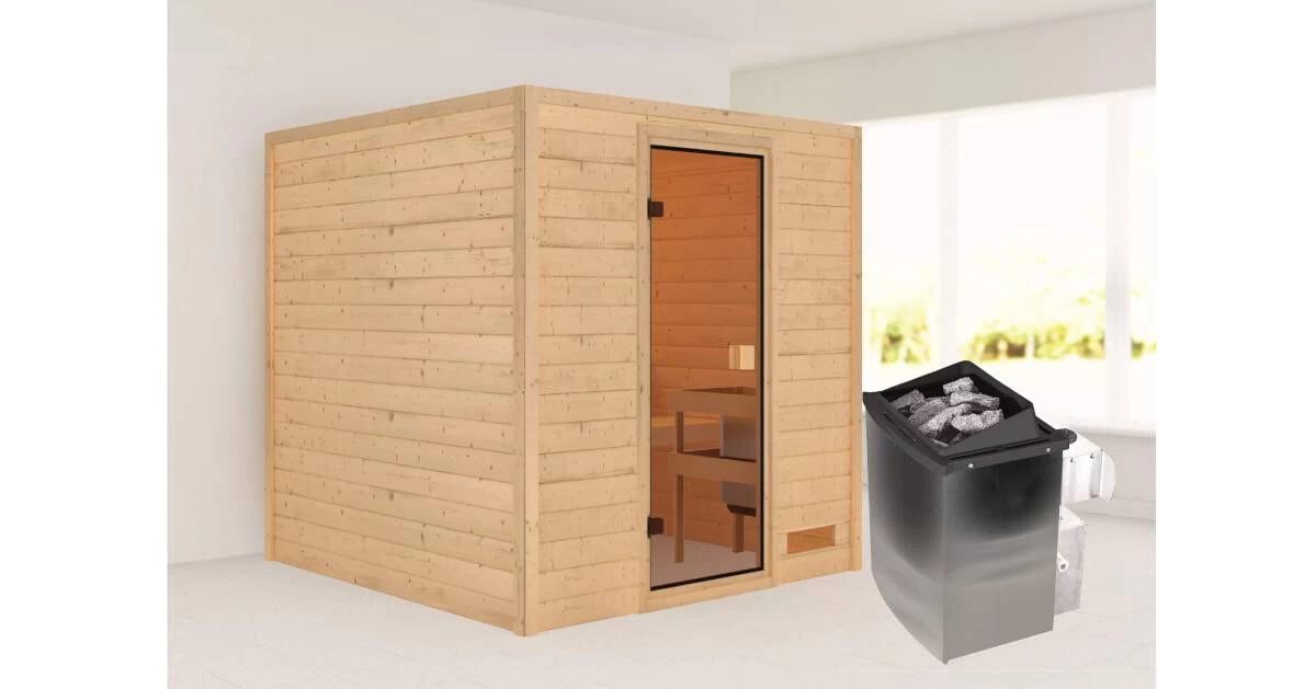 Karibu 38mm Massivholzsauna Jara mit 9kW Saunaofen + integrierter Steuerung