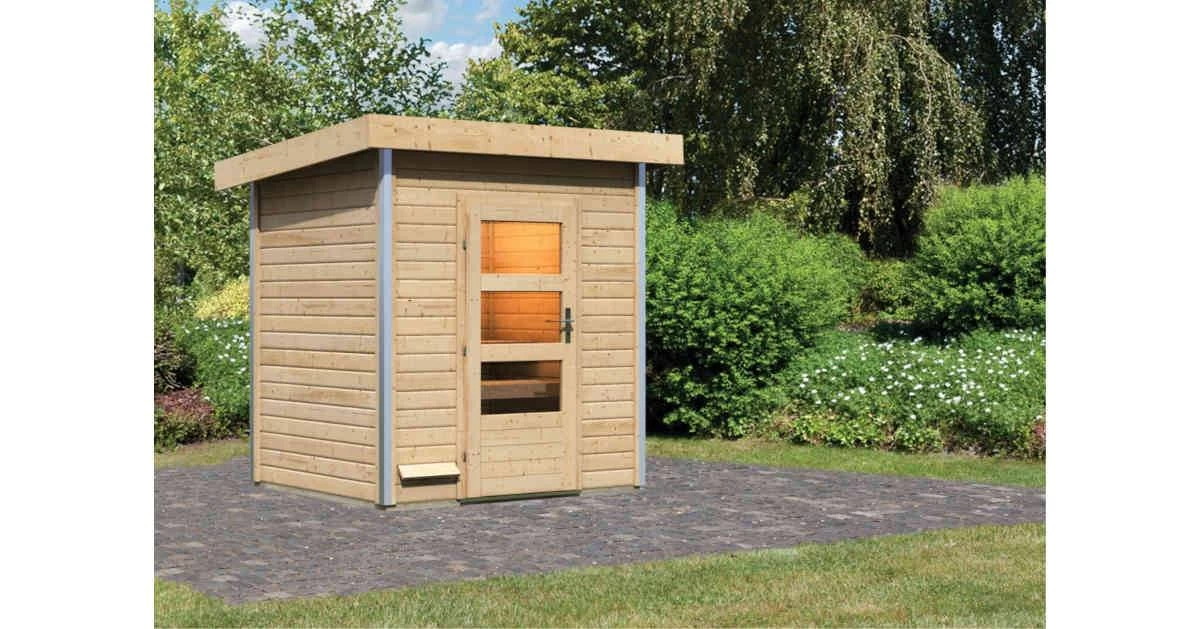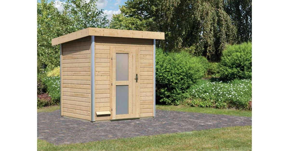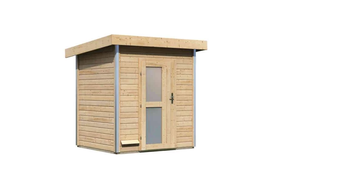 Zum Schutz des Steuergerätes vor Nässe ist ein Steuergerät-Schutzkasten im Lieferumfang enthalten. Das schützende Pultdachhaus besteht aus Massivholz und bietet, ausgestattet mit einer optional erhältlichen selbstklebenden Dachfolie, den idealen Schutz vor der Witterung. Damit die Wärme im Inneren nicht entweichen kann, wird eine zweite Decke aus einer 42mm starken Rahmenkonstruktion mit Mineraldämmwolle eingezogen. Verschlossen wird die Sauna mithilfe einer Einflügeltür mit Zylinderschloss inkl. drei Schlüsseln. Passen Sie das Saunahaus Ihrem Gartenambiente an und wählen Sie zwischen zwei Türvarianten. Die moderne Einflügeltür besitzt drei Lichtausschnitte aus Isolierglas. Diese lassen Licht in das Innere und sorgen so für eine natürliche Lichtquelle am Tag. Oder vielleicht doch lieber eine Einflügeltür mit zwei länglichen Lichtausschnitten und einem Isolierglas in Milchglasoptik für einen optisch geschlossenen Raum?Hier können Sie ganz nach Ihren Vorlieben entscheiden.