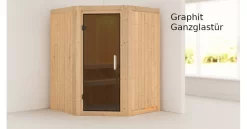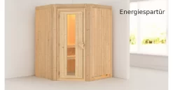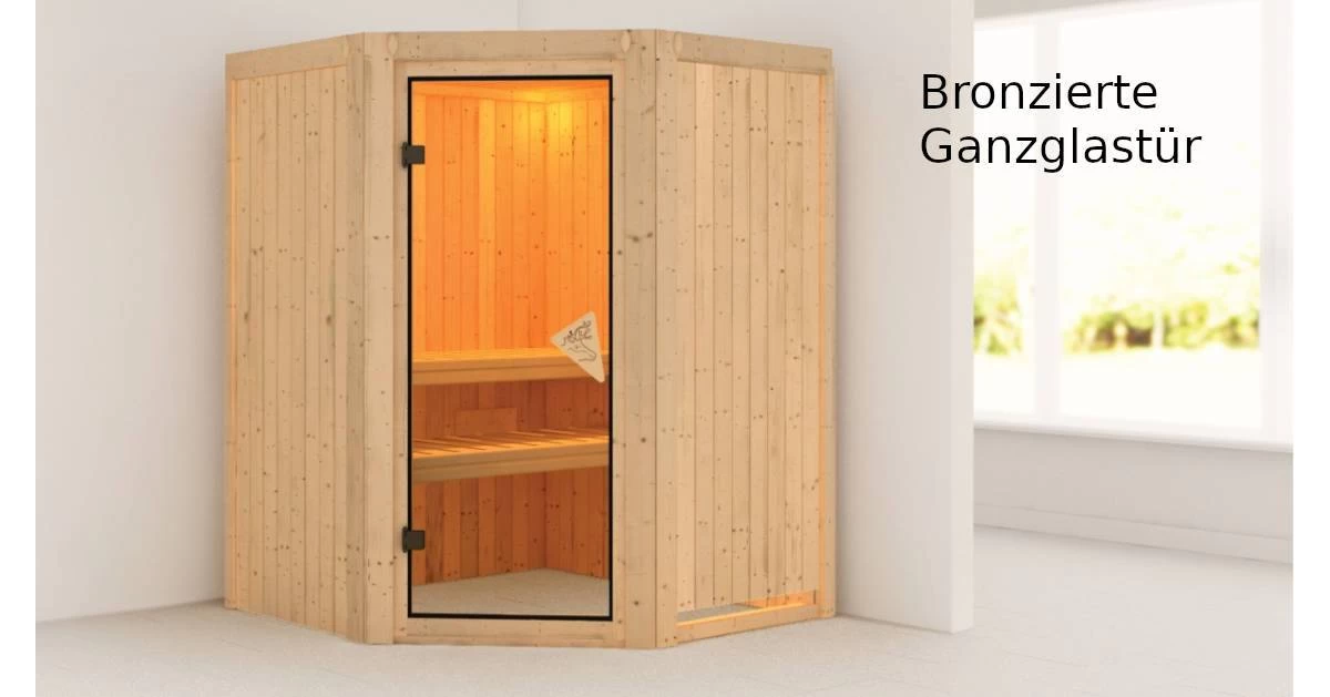 Sparen Sie wertvolle Energie mit der Systemsauna Larin. Eine 68mm starke Konstruktion, bestehend aus einer Rahmenkonstruktion mit 42mm starker Mineraldämmwolle und einer Verkleidung an der Sichtseite aus 12,5mm Spezial-Softline-Profilholz, hält die Wärme optimal im Saunainneren. Die Decke besteht aus einer 57mm starken Spezialplatte mit Mineraldämmwolle. Die Außenmaße ohne Dachkranz betragen 151 x 151 x 198cm (B/T/H). Die Sauna verfügt über 2 Saunabänke aus Espenholz zum Entspannen und Wohlfühlen. Mit einem optional erhältlichen Saunaofen bringen Sie das Innere schnell auf Temperatur. Bei dem Ofen können Sie zwischen einer Variante mit integrierter Steuerung, einer Variante mit externer Steuerung oder einem Bio-Kombiofen wählen. So ist garantiert für jeden das Richtige dabei. Durch einen optionalen Dachkranz inkl. drei LED-Spots können Sie Ihre Sauna von außen beleuchten und sie so perfekt in Szene setzen. In den Innenraum gelangen Sie durch eine Saunatür. Hier können Sie sich zwischen vier möglichen Varianten entscheiden. Egal ob klassisch mit bronziertem Glas, modern mit graphitfarbenem Glas, schlicht mit klarem Türglas oder passend mit einer energiesparenden, wärmegedämmten Holztür mit klarem Isolierglas. Durch die vorgefertigten Wand und Deckenelemente wird Ihnen ein einfacher Aufbau ermöglicht. Passen Sie die Sauna auf Ihre Bedürfnisse an mit unserem optional erhältlichen Zubehör. Eine ergonomische Kopfstütze für den optimalen Liegekomfort, eine ergonomische Rückenlehne zur perfekten Entspannung oder eine Saunaleuchte modern für das richtige Ambiente. Genießen Sie die Ruhe nach einem anstrengenden Arbeitstag bei einem ausgiebigen Saunagang und erholen Sie sich vom Alltag. Verringern Sie den Energieverbrauch beim Saunieren mit der 68mm Systemsauna Larin.