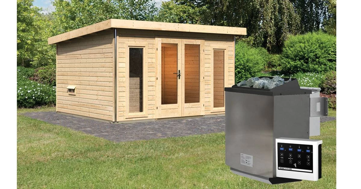 Karibu 38mm Saunahaus Mainburg 2 + 9 kW BIO-Kombiofen mit ext. Steuerung Easy