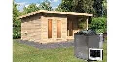 Karibu 38mm Saunahaus Mainburg 5 + 9 kW BIO-Kombiofen mit ext. Steuerung Easy