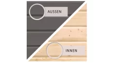 Hinweis: Die Wandinnenseiten, das Dach, der Boden und die Schnittkanten sind aus produktionstechnischen GrĂĽnden nicht endbehandelt und stellen somit einen Unterschied zur AuĂźenseite dar. (Diese mĂĽssen nachbehandelt werden)