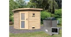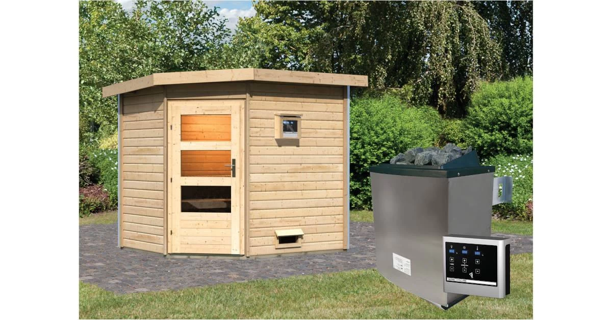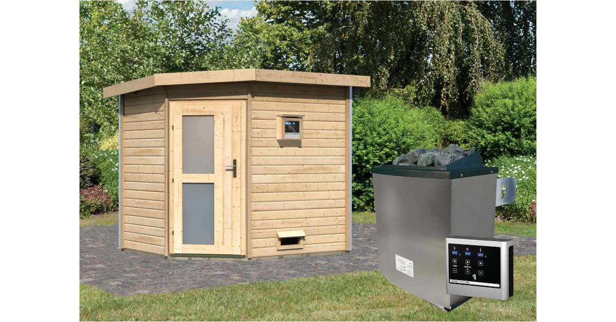 Karibu 38mm Saunahaus Mikka + 9 kW Saunaofen mit ext. Steuerung Easy