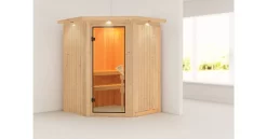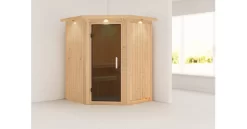 Das volle Saunaerlebnis genießen und dennoch Energie sparen. Dies ist möglich mit unserenr 68mm Systemsauna Nanja und dem steckerfertigen 3,6kW-Saunaofen. Durch die vormontierten Wandelemente kann die Sauna schnell und einfach montiert werden. Die 68mm starken Elemente bestehen aus einer Rahmenkonstruktion, welche an der Sichtseite mit 12,5mm starkem Spezial-Softline-Profilholz verstärkt sind. Diese Konstruktion bietet eine ideale Isolierung und hält die Wärme perfekt im Innenraum. Optional ist die Sauna Nanja mit einem Dachkranz inkl. drei LED-Spots erhältlich. Diese sorgen nicht nur für ein schönes Ambiente im Außenbereich der Sauna, sondern setzen diese auch noch gekonnt in Szene. Die Außenmaße betragen 151 x 151 x 198cm (B/T/H). In den großen Innenraum der Sauna gelangen Sie durch eine Saunatür. Hier haben Sie die Wahl aus vier Varianten und das ganz ohne Mehrkosten. Egal ob in der wärmegedämmten, energiesparenden Version, der klaren Ganzglastür, der Version mit bronzierte Ganzglastür oder der modernen graphitfarbenen Türversion. Hier ist garantiert für jeden Geschmack das Richtige dabei. Um sich im Saunainneren perfekt erholen zu können, wird hier1 Saunaliege aus massivem Espenholz montiert. Das Holz ist besonders weich und nimmt die Wärme nicht so stark an. Dies ermöglicht ein angenehmes Sitz- und Liegegefühl. Bei dem steckerfertigen Saunaofen können Sie zwischen drei Varianten wählen. Einer mit integrierter Steuerung, einer mit externem Steuergerät Easy und einem 3,6kW Bio-Kombi-Ofen. Das Besondere an diesem Saunaofen ist aber nicht seine Variantenvielfallt, sondern der Anschluss. Der Ofen wird mithilfe eines Steckers zur Inbetriebnahme an eine hausübliche 230Volt-Steckdose angeschlossen. Da hierfür kein Fachmann erforderlich ist, entfallen die Kosten für einen Elektriker und einen Umbau auf einen 400 Volt-Anschluss. Genießen Sie das volle Saunaerlebnis und sparen zusätzlich Energie mit der 68mm Plug & Play Sauna Nanja.