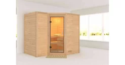 Ein Ort der Ruhe und Entspannung in den eigenen Vier Wänden. Nach einem stressigen Tag die Seele baumeln lassen und sich von der wohligen Wärme in einer Sauna verwöhnen ohne das Haus verlassen zu müssen. Dies ist möglich mit unserer 38mm Massivholzsauna Sahib 2. Die stabile Konstruktion mit 38mm Bohlen aus nordischem Fichtenholz wird im einfachen Steck-/ Schraubsystem montiert. Durch die massiven Vollholzwände wird im Saunainneren ein ideales Raumklima nach finnischem Vorbild geschaffen. Ein optional wählbarer Dachkranz inkl. 3 LED-Spots setzt die Sauna gekonnt in Szene. Wählen Sie eine von vier möglichen Türvarianten und passen Sie Ihre Sauna den eigenen Vorstellungen optimal an. Ob energiesparend mit einer Holztür mit Isolierglas, klassisch mit einer bronzierten Ganzglastür, modern mit einer Ganzglastür in graphitfarben oder schlicht mit einer klaren Ganzglastür. Hier ist garantiert das Richtige für Sie dabei. Mit einem Außenmaß von 236 x 184 x 209 cm (B/T/H) besitzt die Sauna Sahib 2 die ideale Größe zum Entspannen und Wohlfühlen. Erweitern Sie Ihre Möglichkeiten mit dem optional erhältlichen 9kW-Bio-Kombiofen. Neben einer klassischen finnischen Sauna haben Sie hier die Möglichkeit einer Kräuterdampf-Kur, einem Dampfbad und einer Familiensauna. So wird es zu einem Saunaerlebnis für die ganze Familie. Lassen Sie sich von der wohltuenden Wirkung des Saunabadens überzeugen. Bei regelmäßiger Anwendung fühlen Sie sich nicht nur deutlich entspannter. Zusätzlich wirkt es sich positiv auf den Stoffwechsel aus, verfeinert das Hautbild und unterstützt den Stressabbau. Um ein besonderes Sauna-Gefühl zu schaffen, wird die Sauna mit Saunaliegen und einer Kopfstütze ausgestattet. Durch eine extra breite Saunaliege von 62 cm Breite wird Ihnen ein besonders angenehmer Liegekomfort geboten. Ein Ofenschutzgitter schützt Sie vor Verbrennungen durch den Saunaofen. Mit einer optional erhältlichen Salzkristall Vital Sole oder der Salzkristall-Leuchte können Sie Ihre Atemwege befreien und wieder tief ein- und ausatmen. Genießen Sie die zahlreichen Vorteile des Saunieren und schaffe Sie einen Ort der Ruhe mit der Massivholzsauna Sahib 2.