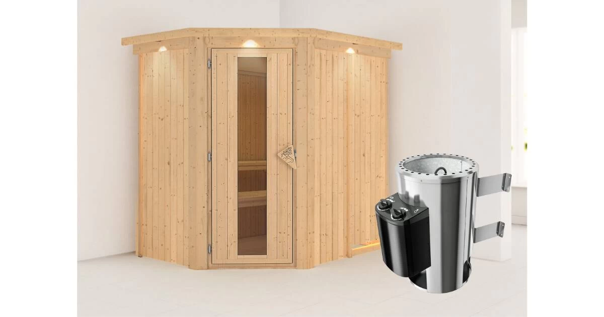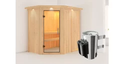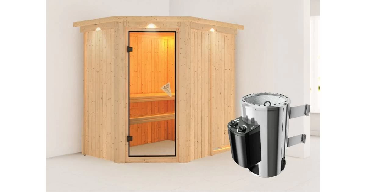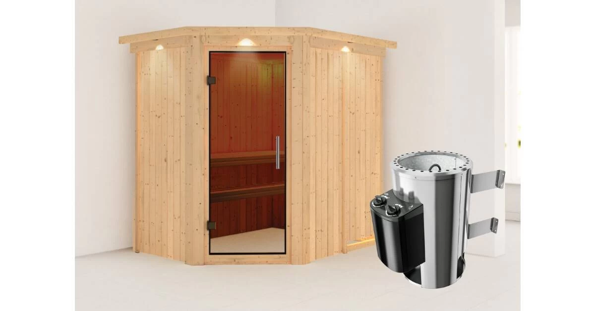 Karibu 68mm Systemsauna Saja mit 3,6kW Saunaofen mit integrierter Steuerung