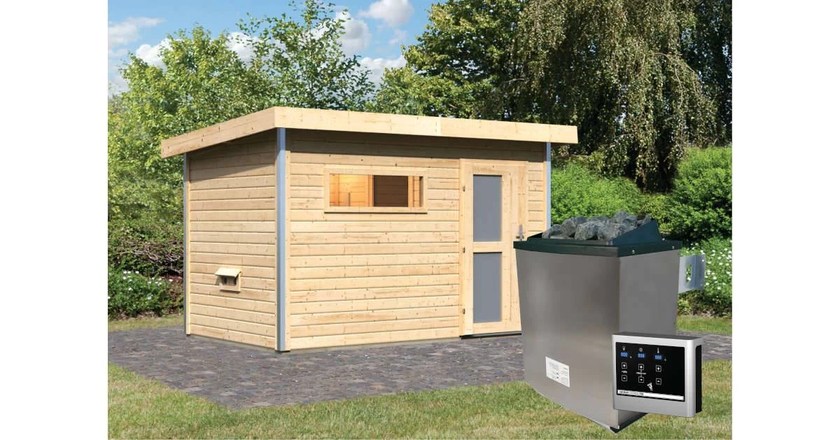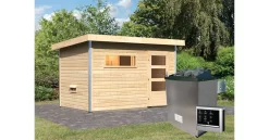 Karibu 38mm Saunahaus Skrollan 1 + 9 kW Saunaofen mit ext. Steuerung Easy