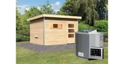 Karibu 38mm Saunahaus Skrollan 2 + 9 kW BIO-Kombiofen mit ext. Steuerung Easy