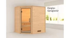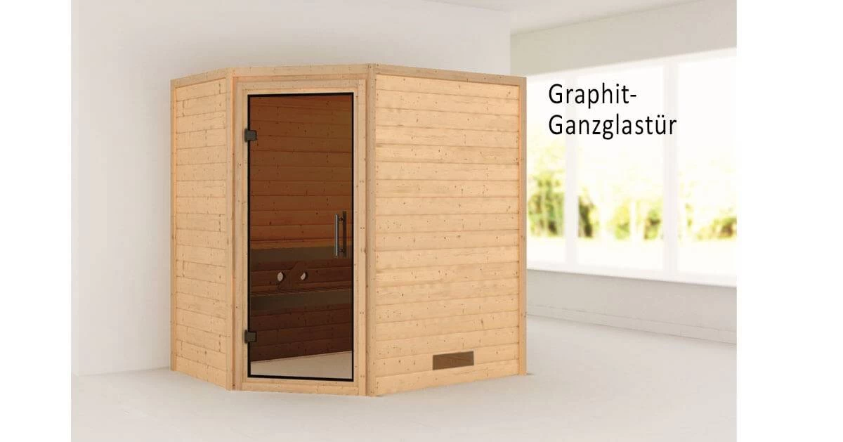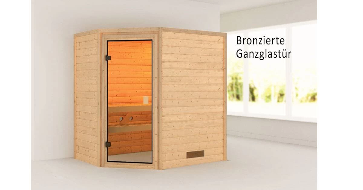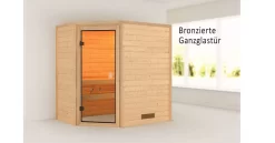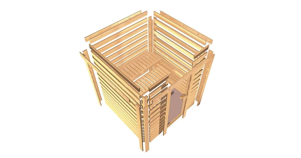 Karibu 38mm Massivholzsauna Svea mit 9kW Saunaofen (integrierte Steuerung)