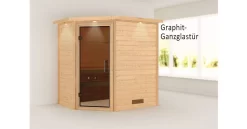 Karibu 38mm Massivholzsauna Svea mit Dachkranz + 9kW Saunaofen (integrierte Steuerung)