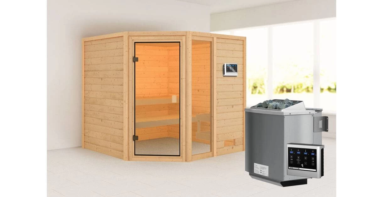 Karibu 38mm Massivholzsauna Tabea + 9kW BIO-Kombiofen mit ext. Steuerung Easy