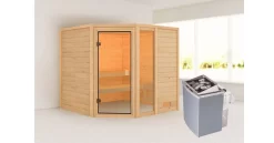 Karibu 38mm Massivholzsauna Tabea + 9kW Saunaofen mit integrierter Steuerung