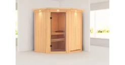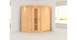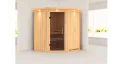 Das volle Saunaerlebnis genießen und dennoch Energie sparen. Dies ist möglich mit unserenr 68mm Systemsauna Tonja und dem steckerfertigen 3,6kW-Saunaofen. Durch die vormontierten Wandelemente kann die Sauna schnell und einfach montiert werden. Die 68mm starken Elemente bestehen aus einer Rahmenkonstruktion, welche an der Sichtseite mit 12,5mm starkem Spezial-Softline-Profilholz verstärkt sind. Diese Konstruktion bietet eine ideale Isolierung und hält die Wärme perfekt im Innenraum. Optional ist die Sauna Tonja mit einem Dachkranz inkl. drei LED-Spots erhältlich. Diese sorgen nicht nur für ein schönes Ambiente im Außenbereich der Sauna, sondern setzen diese auch noch gekonnt in Szene. Die Außenmaße betragen 170 x 151 x 198cm (B/T/H). In den großen Innenraum der Sauna gelangen Sie durch eine Saunatür. Hier haben Sie die Wahl aus vier Varianten und das ganz ohne Mehrkosten. Egal ob in der wärmegedämmten, energiesparenden Version, der klaren Ganzglastür, der Version mit bronzierte Ganzglastür oder der modernen graphitfarbenen Türversion. Hier ist garantiert für jeden Geschmack das Richtige dabei. Um sich im Saunainneren perfekt erholen zu können, wird hier1 Saunaliege aus massivem Espenholz montiert. Das Holz ist besonders weich und nimmt die Wärme nicht so stark an. Dies ermöglicht ein angenehmes Sitz- und Liegegefühl. Bei dem steckerfertigen Saunaofen können Sie zwischen drei Varianten wählen. Einer mit integrierter Steuerung, einer mit externem Steuergerät Easy und einem 3,6kW Bio-Kombi-Ofen. Das Besondere an diesem Saunaofen ist aber nicht seine Variantenvielfallt, sondern der Anschluss. Der Ofen wird mithilfe eines Steckers zur Inbetriebnahme an eine hausübliche 230Volt-Steckdose angeschlossen. Da hierfür kein Fachmann erforderlich ist, entfallen die Kosten für einen Elektriker und einen Umbau auf einen 400 Volt-Anschluss. Genießen Sie das volle Saunaerlebnis und sparen zusätzlich Energie mit der 68mm Plug & Play Sauna Tonja.