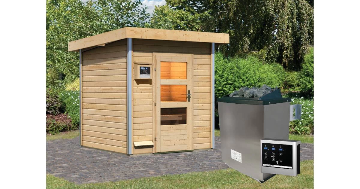 Karibu 38mm Saunahaus Torge + 9 kW Saunaofen mit ext. Steuerung Easy