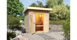 Saunieren nach dem Vorbild der Finnen. Mit dem Saunahaus Torge ist dies im eigenen Garten möglich. So ist das typische Eis- oder Schneebaden nach dem Saunagang zumindest im Winter durchaus möglich. Sollten Sie sogar einen See vor dem Haus haben, können Sie auch diesen nutzen, um sich abzukühlen. Das Saunahaus Torge bietet mit einem Außenmaß von 196 x 196 x 228 (B/T/H) cm genügend Raum zum Entspannen. Nach einem stressigen Arbeitstag sich in den eigenen Garten zurückziehen und in der Außensauna entspannen oder den Urlaubstag im Garten mit einem ausgiebigen Saunagang abrunden.