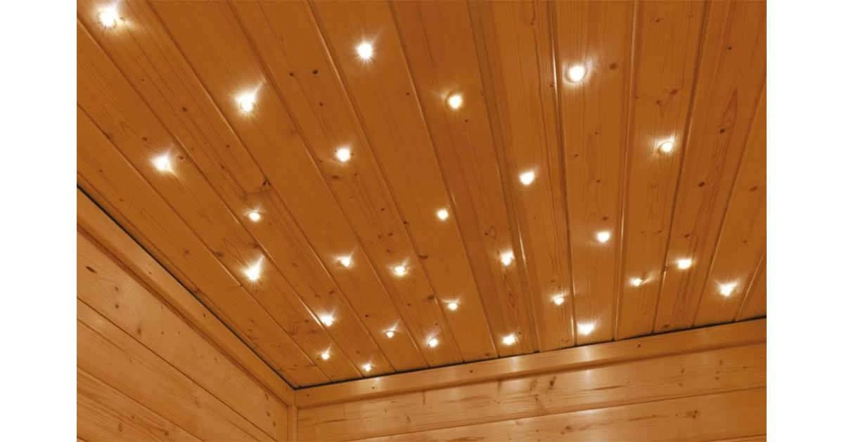 Beim Entspannen in der Sauna die Sterne am dunklen Nachthimmel betrachten und sich dabei in eine Fantasiewelt träumen. Egal ob in einer Hängematte am Strand, schwebend auf einer Wolke oder an einem warmen Sommertag auf einer grünen Wiese. Kreieren Sie sich Ihren ganz einen Moment der Entspannung mit dem Sternenhimmel. Schaffen Sie sich die passende Stimmung in Ihrer Wellness-Oase. Kommen Sie zur Ruhe bei der kühlen, erfrischenden und entspannenden Farbe Blau, erfreuen Sie sich an dem belebenden gelb nach einem stressigen Arbeitstag oder bringen Sie sich der Natur näher mit einem harmonischen, beruhigenden Grün. Wählen Sie zwischen den Farben lila, himmelblau, gelb, grün, blau oder weiß und holen Sie sich das passende Licht in Ihre Sauna. Der Sternenhimmel besteht aus 40 einzelnen Glasfasern mit einer Stärke von 0,75mm. Per Funksteuerung mit Start-/Stop-Funktion und einem 230 Volt-Anschluss kann der Sternenhimmel in Betrieb genommen werden. Damit die Montage ohne große Mühe gelingen kann, sind im Lieferumfang ein Holzbohrer zum Vorbohren der Dachplatten und eine Montageanleitung enthalten. Bitte nehmen Sie die Fernbedienung nicht mit in die Saunakabine. Erweitern Sie Ihre Wellnessmöglichkeiten in Ihrer eigenen Sauna und schaffen Sie die richtige Stimmung mit unserem Sternenhimmel zum Träumen.