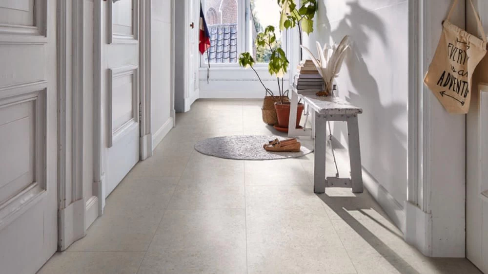 Steinporen-Struktur: Um diese ganz spezielle Optik zu erzielen, wird eine sichtbare und fühlbare Steinstruktur in die Oberfläche geprägt. Das Auge erkennt fast keinen Unterschied mehr zu echtem Steinboden.