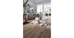Porensynchron-Struktur: Die Oberfläche verleiht dem Boden noch mehr Authentizität, denn hier sind die Poren, Astfüllungen oder Risse individuell auf das darunterliegende Dekorbild abgestimmt. Unterschiedliche Tiefen und Glanzgrade bestimmen die Vielfalt der Synchronstrukturen und verleihen dem Boden sein besonders echtes Aussehen.