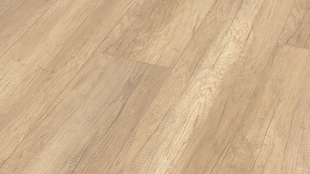 - Hohe Passgenauigkeit und hoher Verlegekomfort durch stabilen Dreischichtaufbau mit HDF-Mittellage