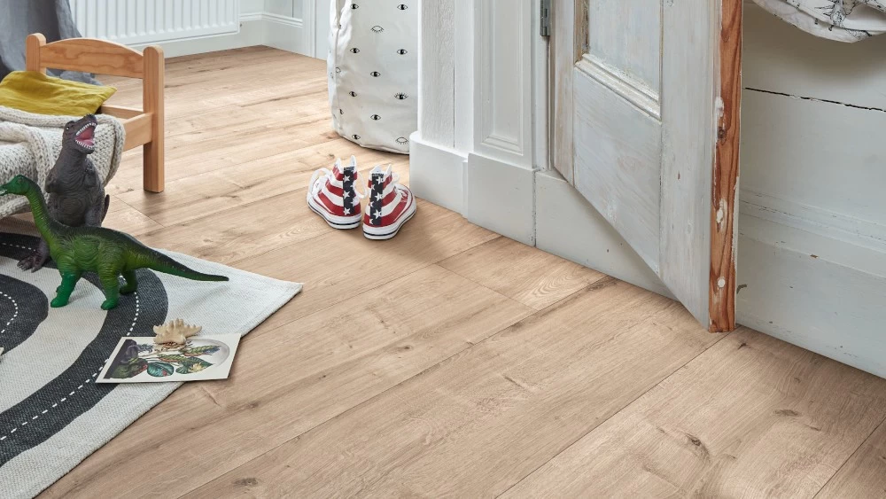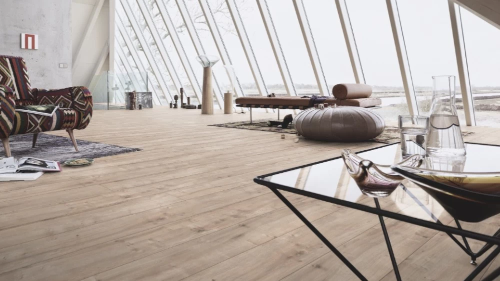 - Einfache und schnelle, leimlose Verlegung, auch auf Warmwasser-Fußbodenheizung