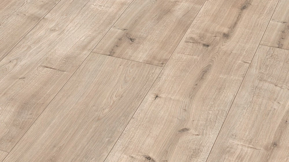 - Hohe Passgenauigkeit und hoher Verlegekomfort durch stabilen Dreischichtaufbau mit HDF-Mittellage