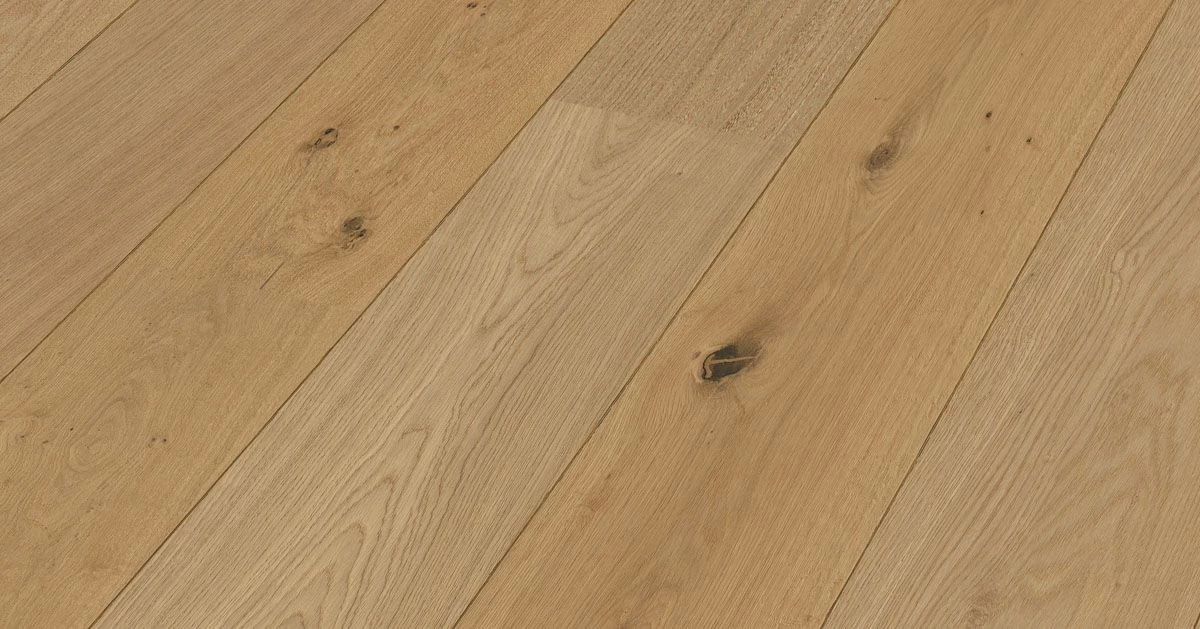 In dieser Sortierung bieten wir bewusst Oberflächen mit kräftigem Farb- und Strukturspiel, die den natĂĽrlichen Charakter des Holzes betonen. Gesunde markante Ă„ste und Kernanteile gehören zum lebhaften Gesamtbild. AstausbrĂĽche und Risse sind – wie bei der Sortierung „Natur“ – mit der Wood-Powder-Technologie bestens ausgebessert.