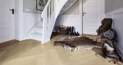 Lindura im Fischgrätformat – ein klassisches Verlegemuster ganz modern interpretiert! Durch das ultramattlackierte Finish, das jede einzelne Pore benetzt, wirkt der Boden nicht nur extra edel und natĂĽrlich, sondern ist auch besonders pflegeleicht, fleckenunempfindlich und resistent gegen Mikrokratzer (kleine Kratzer in der Lackoberfläche, die nicht bis zur Echtholzdeckschicht durchdringen). Auch die Verlegung ist dank des patentierten Klicksystem UniZip ganz unkompliziert, denn hier kommt statt A- und B-Dielen nur ein Dielentyp zum Einsatz.