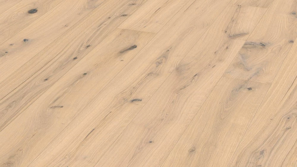 Parkettsortierung authentic: In dieser Sortierung bieten wir bewusst Oberflächen mit starkem Farb- und Strukturspiel, die den natürlichen Charakter des Holzes betonen. Größere Äste, vereinzelte Risse und Splintanteile gehören zum rustikalen Gesamtbild.