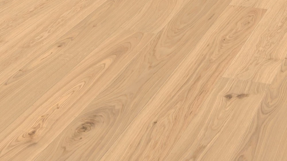 Parkettsortierung lebhaft: In dieser Sortierung bietet MEISTER bewusst Oberflächen mit Farb- und Strukturspiel, die den natürlichen Charakter des Holzes betonen. Gesunde Ast-, Splint- und Braunkernanteile gehören zum lebhaften Gesamtbild. Die Eichen-Landhausdielen sind in dieser Sortierung splintfrei. Astausbrüche werden fachmännisch ausgespachtelt. Kleine nicht spachtelfähige Risse und Äste können vorkommen.