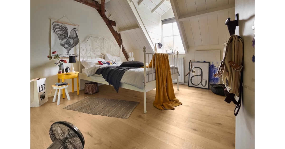 Stabdielen oder Stabparkett im Maxi-Format liegen im Trend. Die Böden der Kollektion MeisterParkett. longlife PS 300 sind die perfekte Bodenlösung für kleinere Räume oder immer dann, wenn besondere Vielfalt auf dem Boden gefragt ist. Das Stabformat lässt sich in zwei unterschiedlichen Mustern verlegen: als englischer Verband (also immer versetzt um die Hälfte des Parkettstabes) oder sogenannter wilder Verband (willkürlich verlegt). Die umlaufende Microfuge hebt die einzelnen Parkettstäbe sichtbar voneinander ab und sorgt so für ein ganz plastisches Bodenerlebnis.